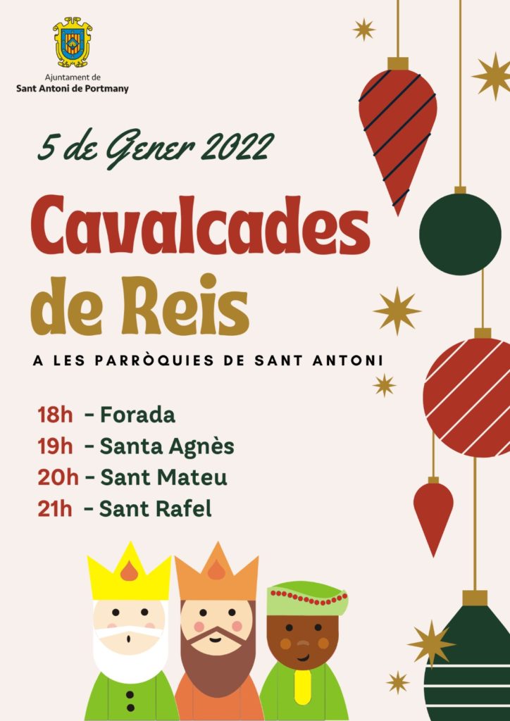 En cuanto a las distintas parroquias de Sant Antoni, los reyes harán su recorrido en Forada a las 18.00 horas, una hora después en Santa Agnès, ya a las 20.00 horas en Sant Mateu, y finalmente a las 21.00 horas pasarán por Sant Rafel.
