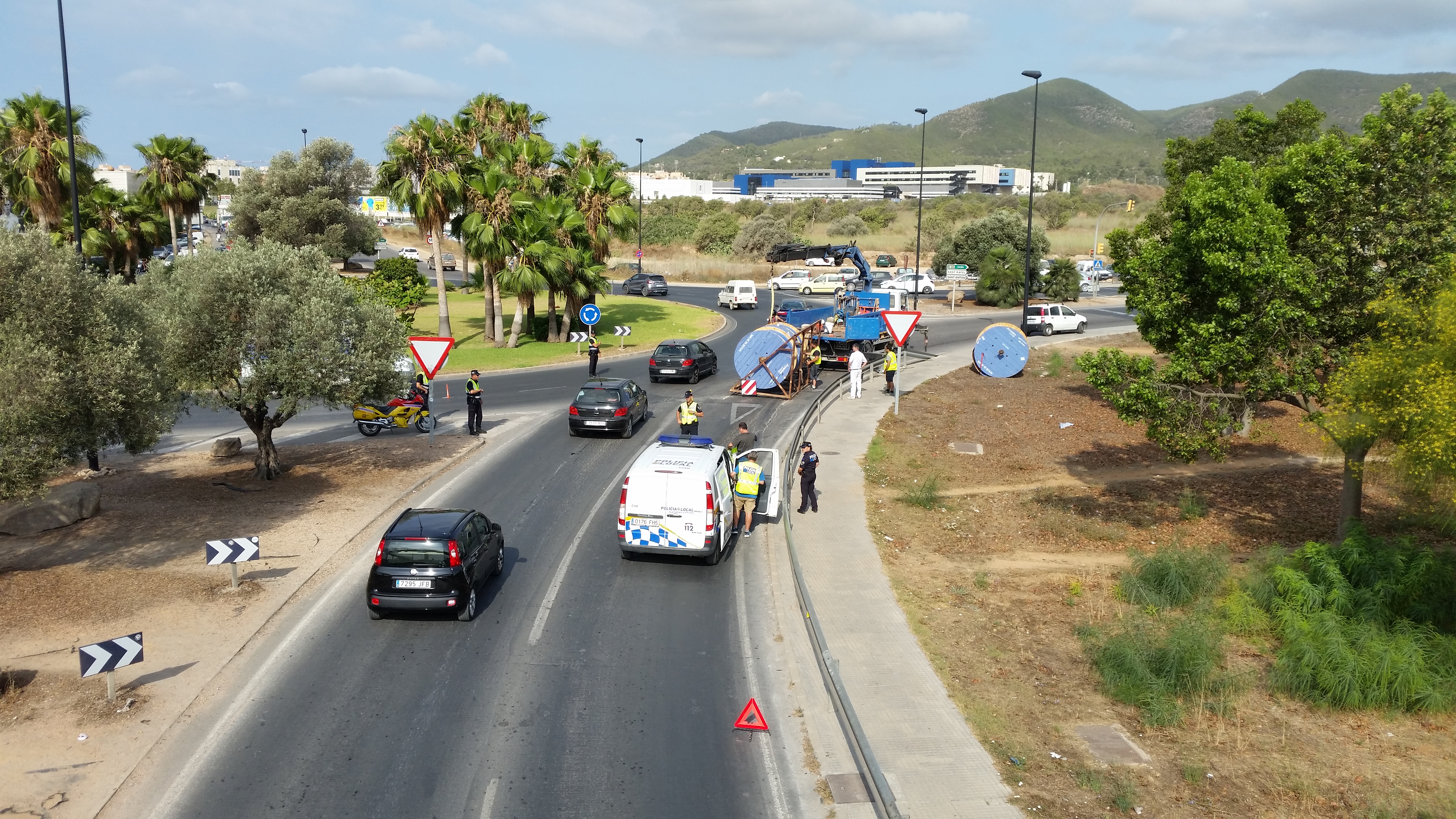 @Noudiari/La caída de la carga de un camión ha provocado esta mañana retenciones en la rotonda Joan XXIII, y ha demandado la presencia de una decena de agentes para organizar el tráfico, tras el incidente que se produjo en torno a las 9.00 horas.