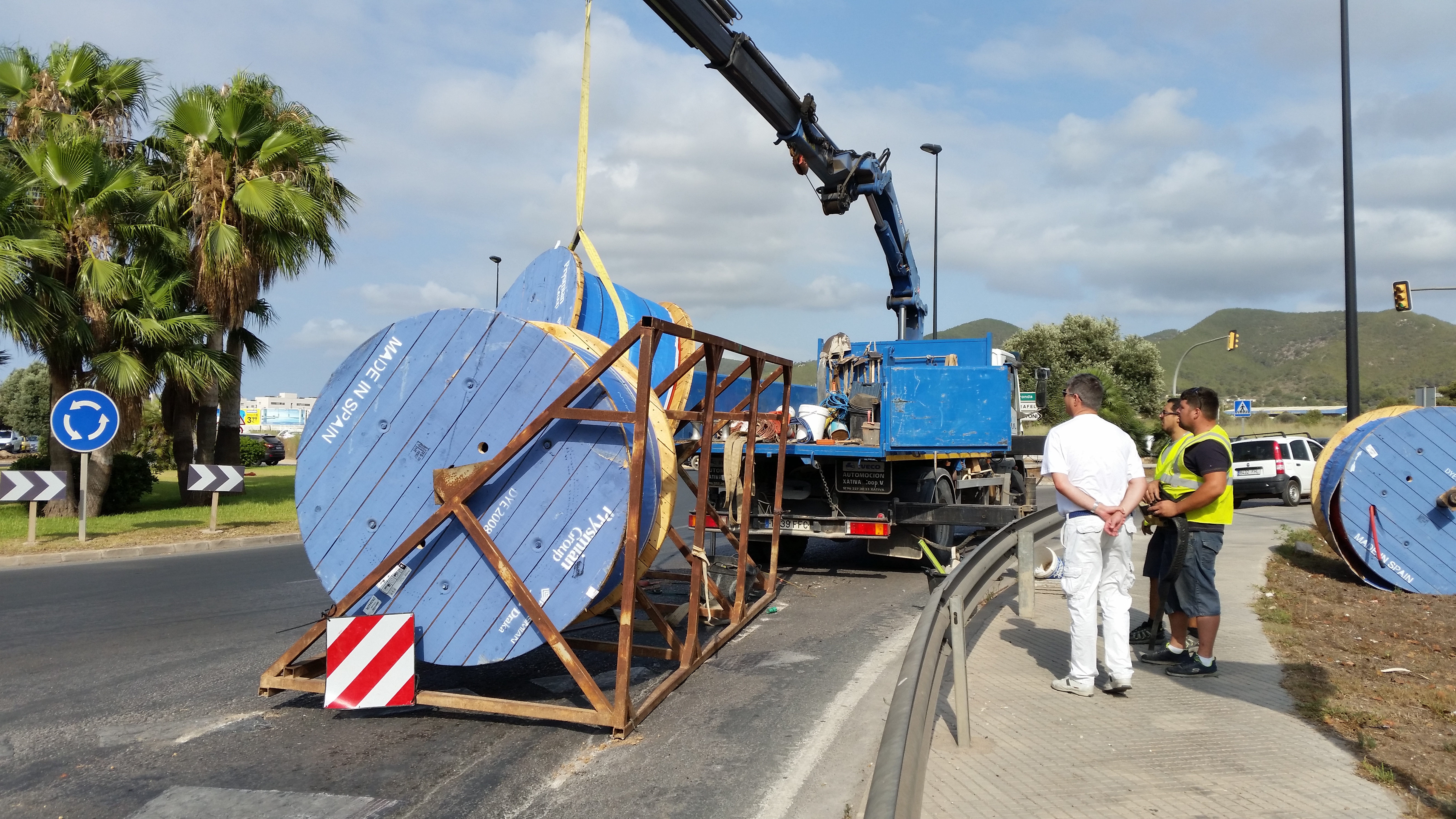 El camión pertenece a la empresa VGC (Vicent Guasch Cardona) que portabas bobinas de gran tamaño, que cayeron a la calzada.