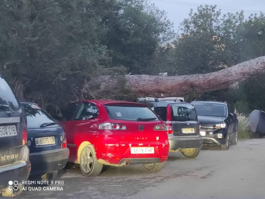 La caída de un árbol de grandes dimensiones en la urbanización Mira Mar, en el municipio ibicenco de Santa Eulària, ha causado daños materiales en varios vehículos que se encontraban estacionados en esta zona. Por fortuna, no se han registrado daños personales, según informan las autoridades locales.