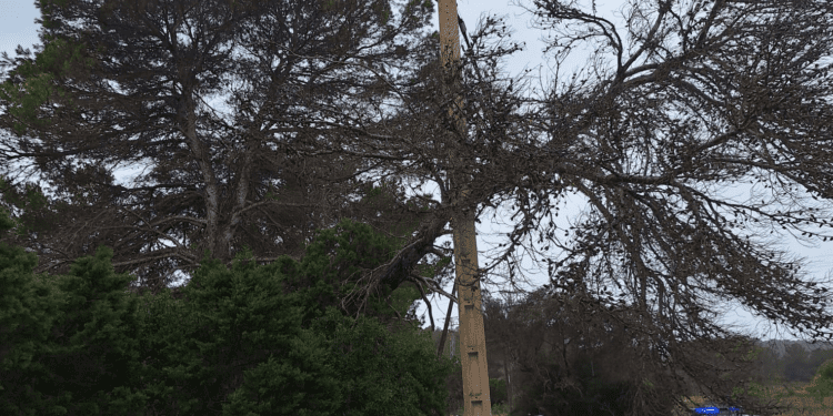 La jornada de ayer, en la que se registraron lluvias y mal tiempo, fue de lo más movida para los bomberos del Parc Insular d’Eivissa. Así, por la mañana, a las 10:30, se requería de su presencia para retirar un pino muerto que había caído sobre el tendido eléctrico.