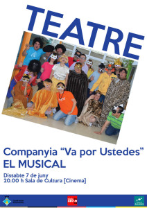 @Noudiari/ La companyia teatral ‘Va por ustedes’, probablement la més singular de les Pitiüses -està integrada per actors amb alguna mena de necessitat especial- presenta aquest dissabte 7 de juny la seva darrera obra: “El Musical” a la Sala de Cultura de Formentera. La cita és a les 20 hores i la diversió i el bon humor estan completament assegurats.