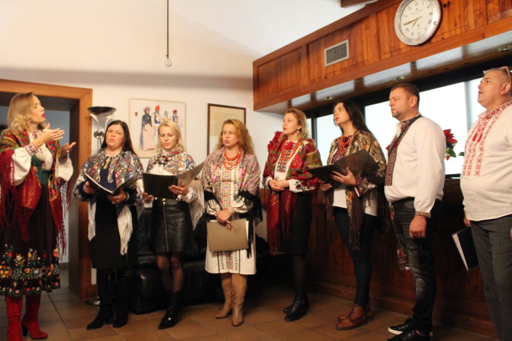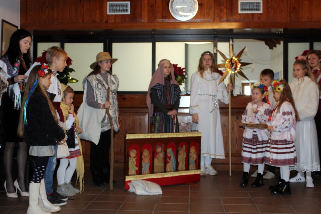 La comitiva incluía a ocho integrantes del coro ucraniano, que han interpretado tres canciones populares de su país ligadas a estas fechas, y una decena de niños, que han interpretado dos villancicos populares de su país y han hecho una breve representación de ofrendas al niño Jesús, según la tradición ucraniana, pero con las alocuciones en castellano.