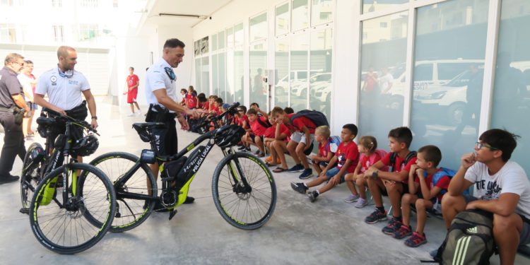 La Policía Local de Sant Antoni ha recibido este jueves por la mañana la visita de la escuela de verano de la Sociedad Deportiva (SD) Portmany, cuyos alumnos han conocido de primera mano las dependencias municipales y el funcionamiento del cuerpo policial.