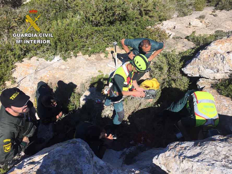 EFE / Agentes especialistas en rescate de montaña (GREIM), técnicos en desactivación de Aexplosivos (TEDAX-NRBQ) y guías caninos de la Guardia Civil han realizado prácticas en pozos y cavidades subterráneas de Formentera.