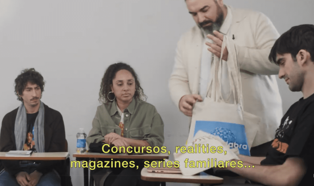 El curso, según explican el el vídeo satírico, creado expresamente para los Premios Iris de la Academia de la Televisión, prepara para la “vida real” del guionista de televisión en España. Lo que, traducido al castellano, significa: concursos, realities, magazines y series familiares. Es decir, menos Los Soprano y más rellenar diez minutos entre actuación y actuación en Tu cara me suena.