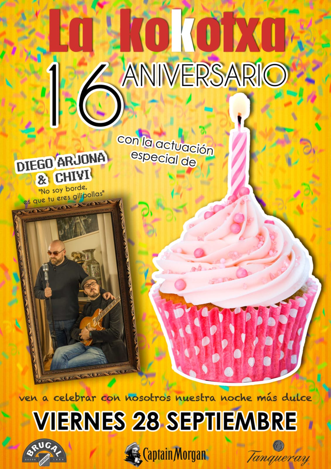 @Noudiari / La mítica La Kokotxa celebra su 16 aniversario con una gran fiesta que tendrá lugar esta noche de viernes, 28 de septiembre. Desde las 21 horas habrá un picoteo para los asistentes y a las 22 horas arranca la actuación de Diego Arjona y Chivi, juntos traen a Ibiza su nuevo show cómico-musical llamado «No soy borde, es que tu eres gilipollas».