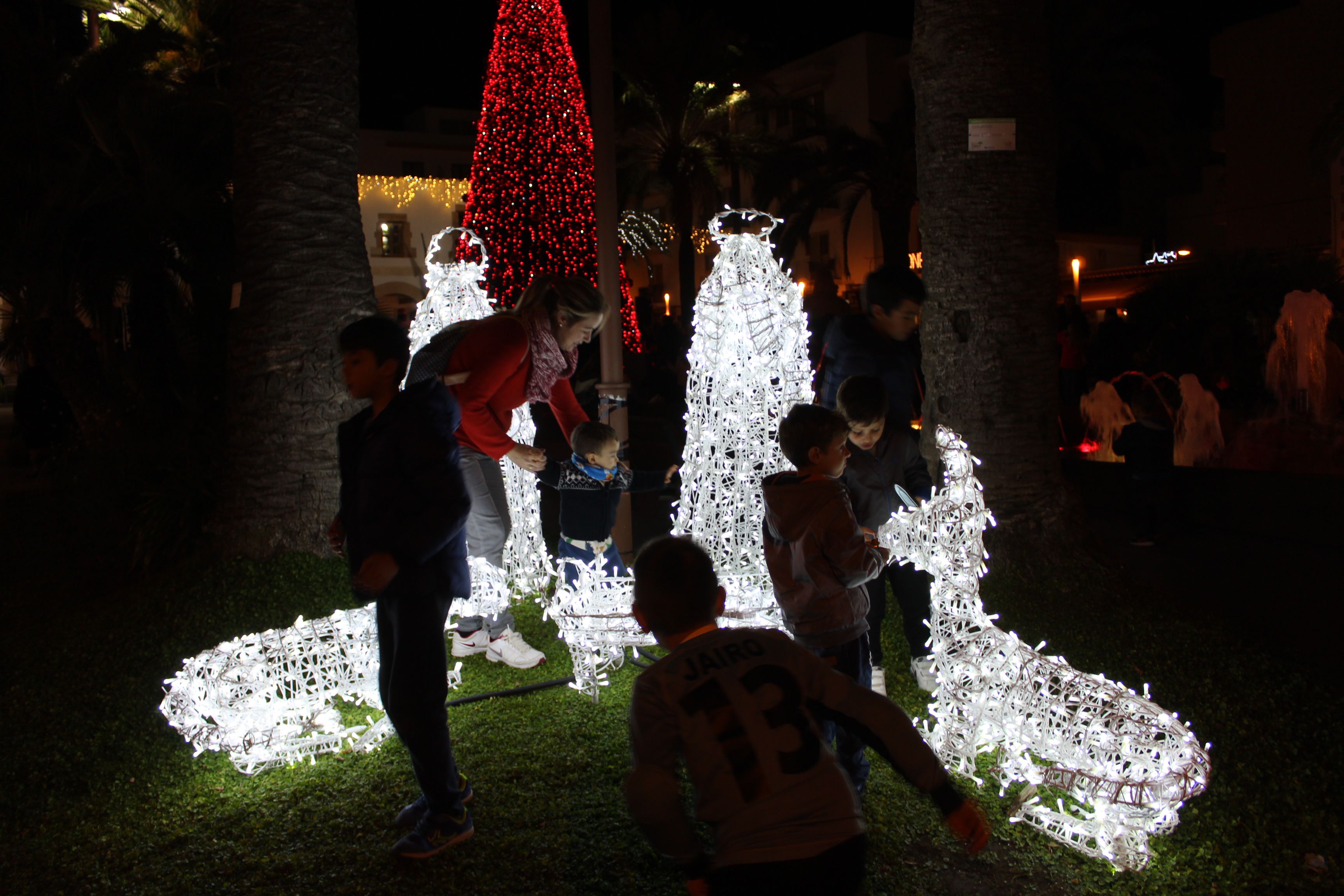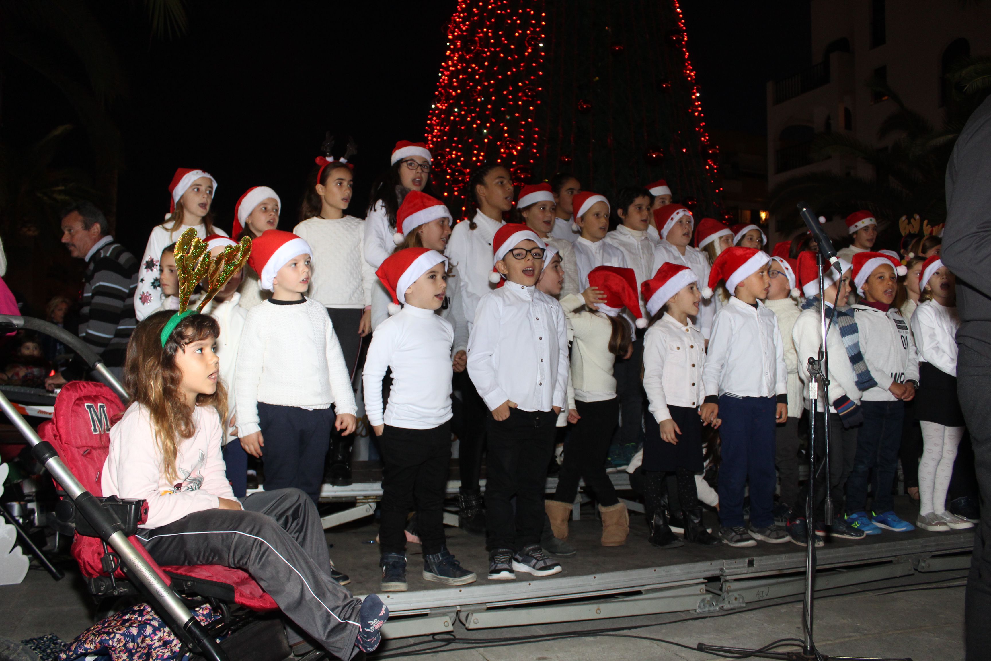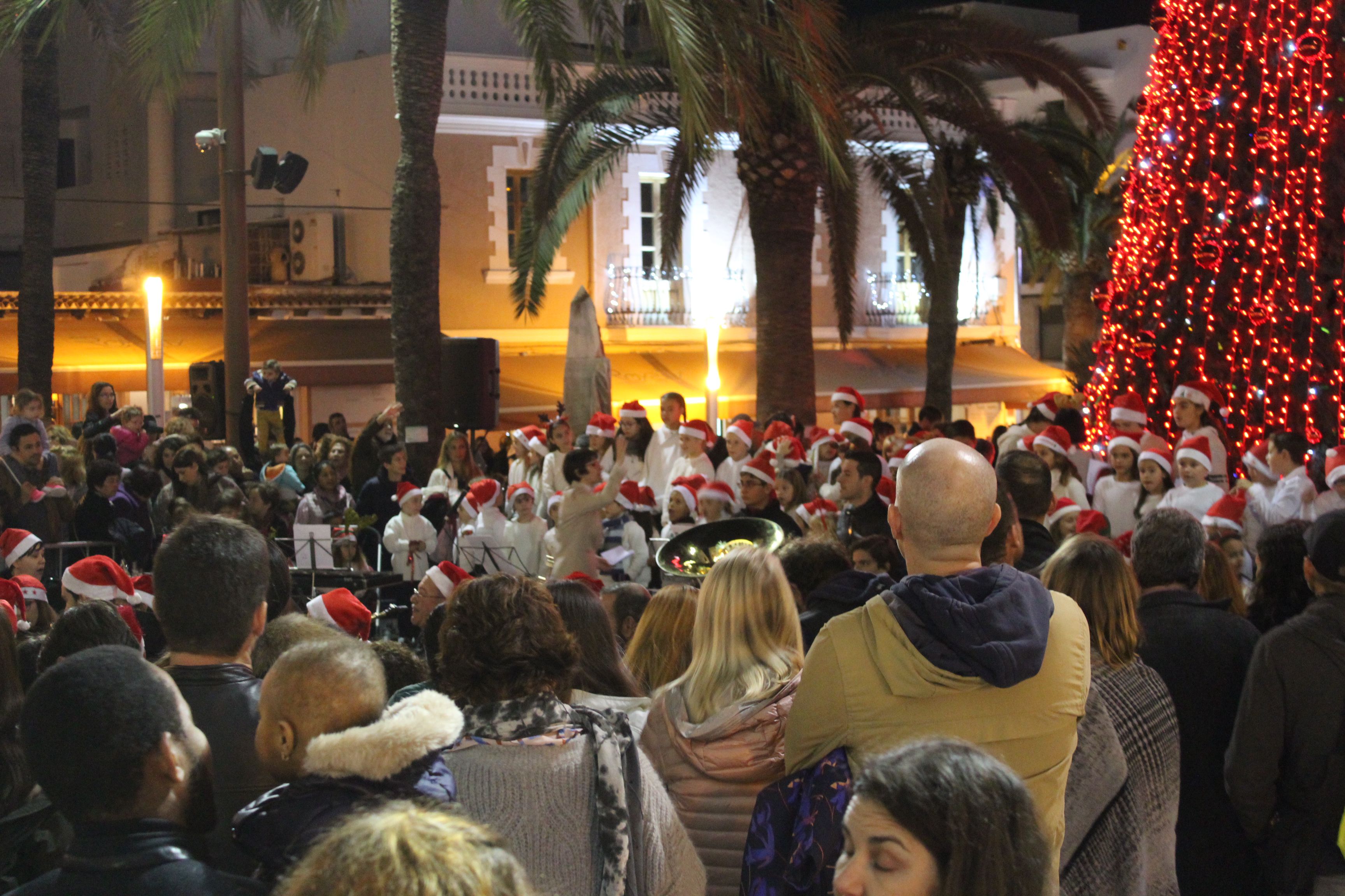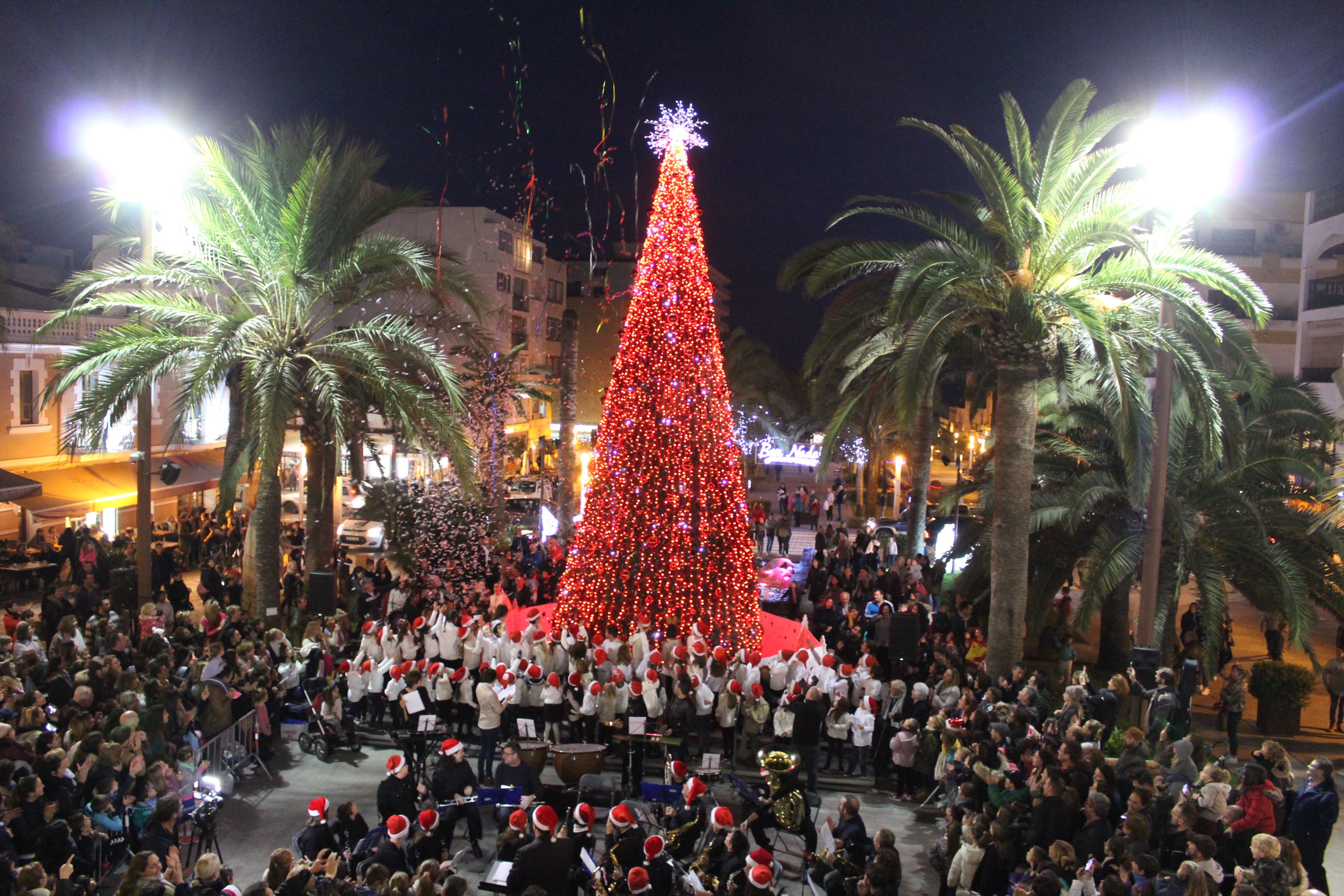 @Noudiari / Varios centenares de personas han disfrutado en directo esta tarde, en la plaza de Espanya de Santa Eulària, del acto oficial de encendido de las luces de Navidad. Los niños han sido mayoría y han podido ver cómo la luz ha iluminado la Villa del Río, un momento que ha estado amenizado por un coro formado por cerca de medio centenar de jóvenes de la Escuela Municipal de Música, así como de la Banda Juvenil Municipal, reforzada para la ocasión con músicos veteranos.