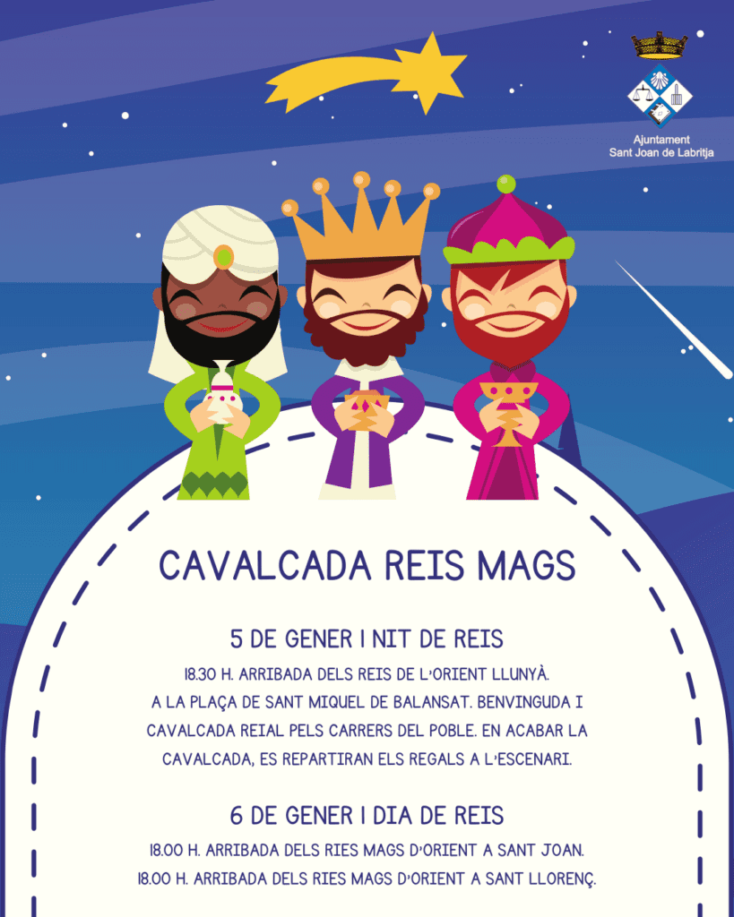 La magia de la Navidad continúa en Sant Joan con la esperada llegada de los Reyes Magos de Oriente. El Ayuntamiento ha organizado las tradicionales cabalgatas en los distintos núcleos del municipio, una cita muy especial para las familias y, sobre todo, para los más pequeños.
