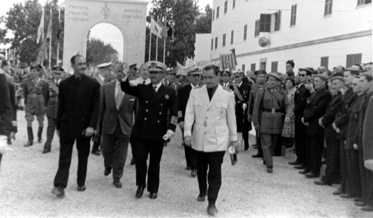 La ciudad debía engalanarse para lucir una buena cara para recibir al Jefe del Estado y el Ayuntamiento levantó dos arcos de triunfo de yeso, con toda la parafernalia del momento para glorificar al personaje. Uno de los arcos se instaló a la altura de la calle de Bartolomé Ramón y Tur, frente a uno de los lados del Hotel Ibiza, actual Montesol; el otro a la entrada de la avenida Isidor Macabich, junto a los dos nuevos bloques de viviendas, construidos a las afueras del núcleo urbano de la época.