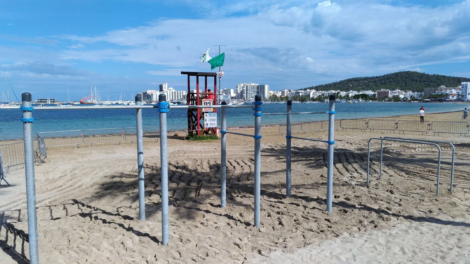 @Noudiari/ La concejalía de Deportes del Ayuntamiento de Sant Antoni ha instalado en la playa de  s’Arenal el primer parque de calistenia del municipio para facilitar a personas de todas las  edades la posibilidad de realizar ejercicio al aire libre a cualquier hora y de forma  gratuita.