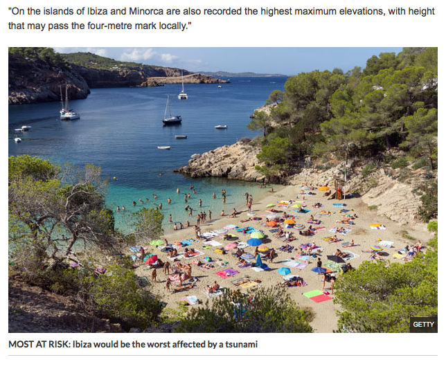 En realidad, el único tsunami que por desgracia va a llegar a Ibiza, es la masa de borrachos, pendencieros y hooligans británicos. Pero bueno, es lo que tiene el aceptar el turismo de masa procedente de este país..