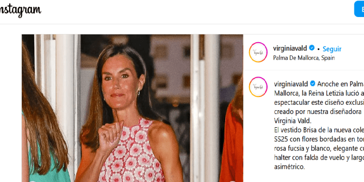 La reina Letizia eligió ayer un vestido de la diseñadora de moda Adlib Viginia Vald para asistir a una cena en familia en un restaurante de Mallorca. Así lo ha comunicado la modista en sus redes sociales, quien ha escrito el siguiente texto: «Anoche en Palma de Mallorca, la Reina Letizia lució así de espectacular este diseño exclusivo creado por nuestra diseñadora Virginia Vald. El vestido Brisa de la nueva colección SS25 con flores bordadas en tonos rosa fucsia y blanco, elegante cuello halter con falda de vuelo y largo midi asimétrico».