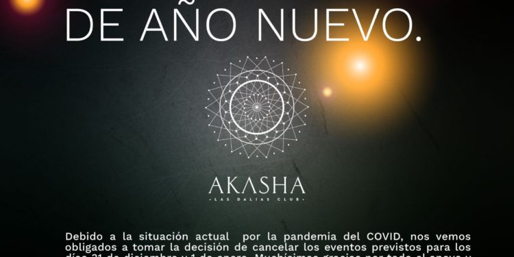 Así anuncian hoy los responsables de la sala Akasha de Las Dalias la cancelación de los eventos previstos para Fin de año y Año nuevo.