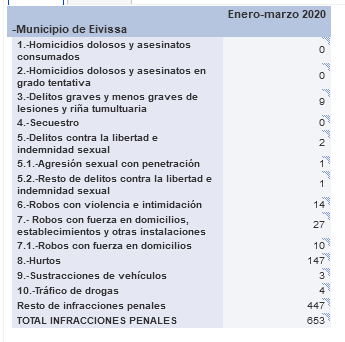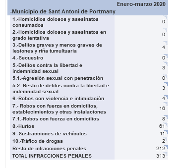 Por el contrario, el volumen de actos delictivos ha aumentado en Maó (9,3%), Ciutadella (10,8) -que registran unas de las tasas más bajas de infracciones por número de habitantes-, y en Sant Josep de sa Talaia, donde ha subido un 7,7%.