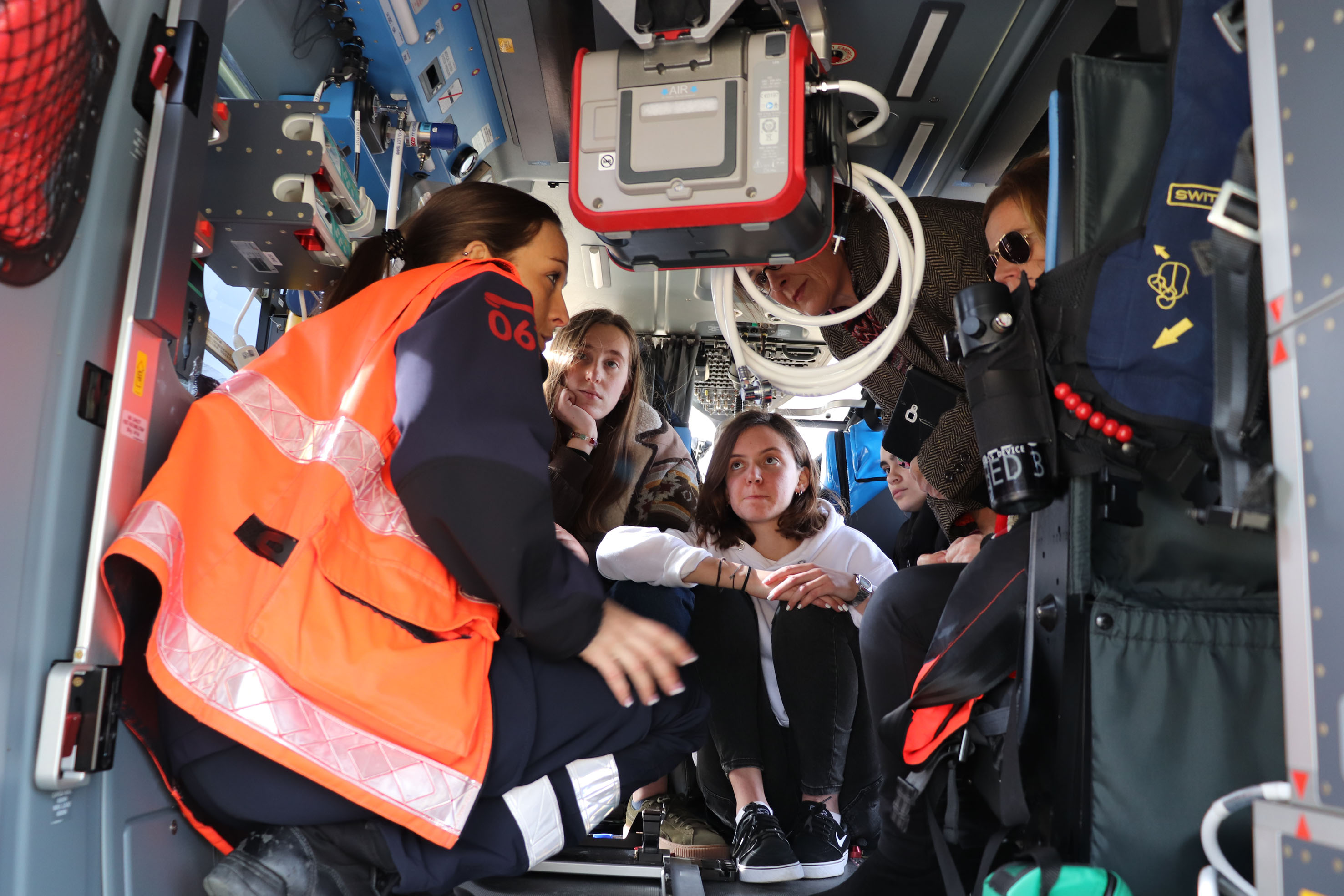 El maratón ha finalizado con el taller de Emergencias extrahospitalarias con una exposición teórica del Coordinador del SAMU 061 Ángel Crespo y una visita posterior a las ambulancias de soporte vital básico y avanzado, y a la helisuperficie, donde han conocido el nuevo modelo de helicóptero EC145.