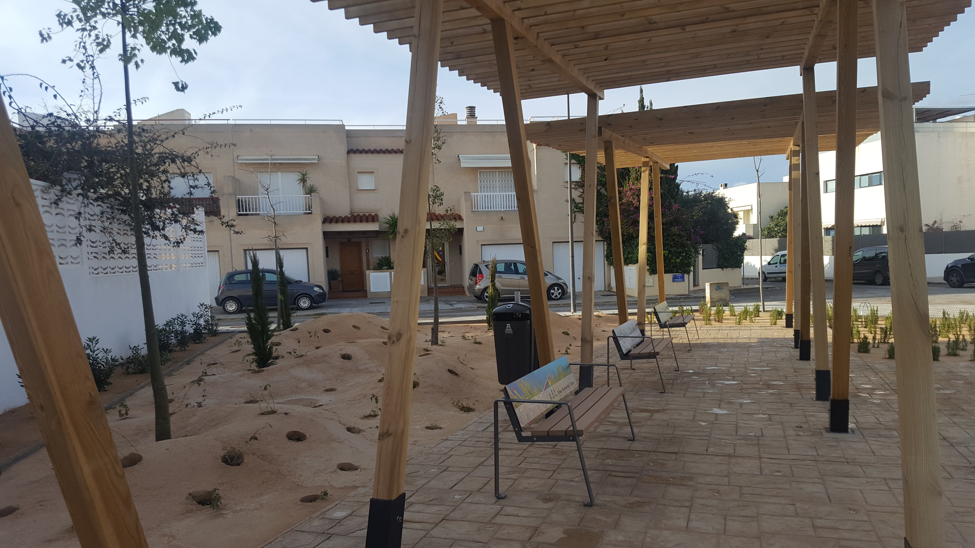 Pel que fa a la zona d’ombra de 320 m2 tindrà dues pèrgoles de fusta i bancs, on també hi haurà aparcabicis per facilitar la mobilitat en bicicleta cap el parc.