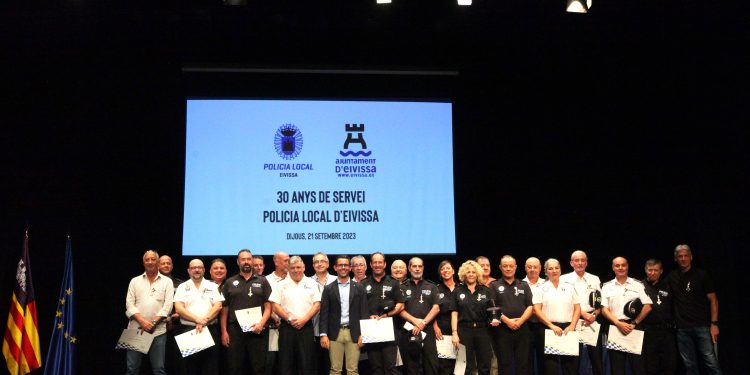 Entre els 30 guardonats de la Policia Local d’Eivissa que han rebut avui la creu al mèrit policial amb distintiu blanc s’inclouen tres subinspectors, nou oficials i 19 agents, entre els que es troben tres dones. En nom dels reconeguts durant l’acte d’avui, el cap de la Policia Local d’Eivissa i subinspector, José María Prats Ferrer, ha expressat que avui ja són més de 30 (38 en el seu cas), els anys que porten aquests policies veterans al Cos de la Policia Local d’Eivissa.