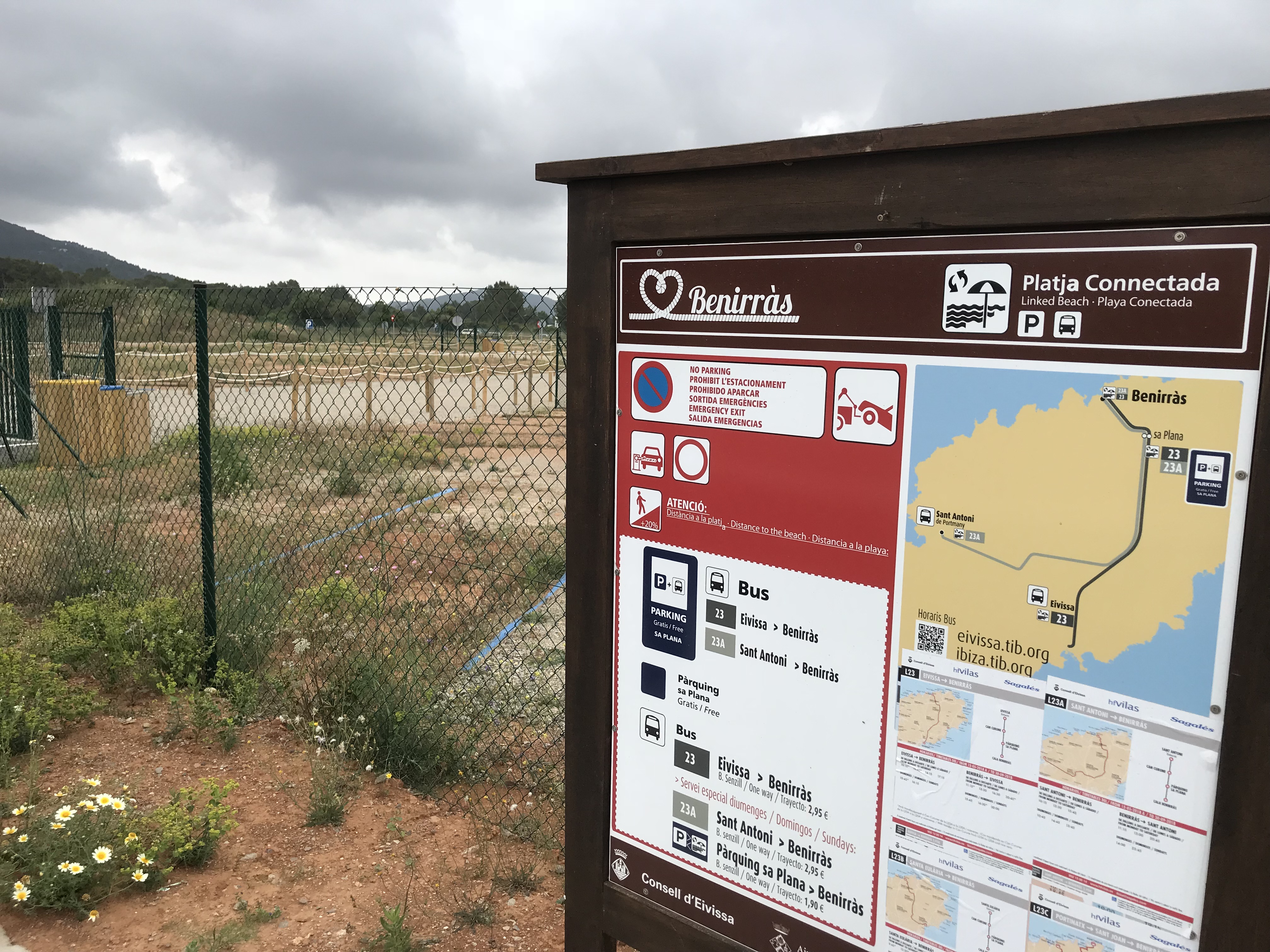 Cartel informativo de la línea de autobús entre la finca de sa Plana y Cala Benirràs. Foto V. Torres