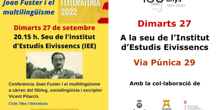La seu de l’Institut d’Estudis Eivissencs (Via Púnica, 29) acull avui, dimarts dia 27 de setembre, la conferència del sociolingüista Vicent Pitarch «Joan Fuster i el multilingüisme» a les 20:15 hores. També es pot seguir en directe a través del següent enllaç: https://youtu.be/lL17Gr9TH4w, tal com han informat des de l’IEE.