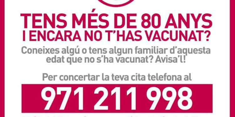 La Conselleria de Salud y Consumo habilita el teléfono 971 211 998 para repescar a todas las personas residentes en Baleares, mayores de 80 años, que no hayan sido vacunadas todavía.