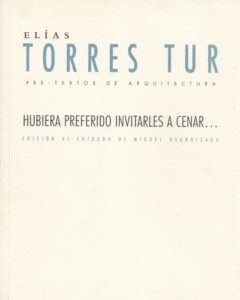 L’any 2005, una vegada més el Col·legi d’Arquitectes de Catalunya en aquest cas amb l’editorial Pre-textos, va aparèixer Hubiera preferido invitarles a cenar, que és una selecció de 26 textos i altres col·laboracions en forma de dibuixos i fotografies de Torres. És una obra miscel·lània, amb materials escrits i dibuixos de diverses procedències, algunes difícils de trobar, ja que varen aparèixer, per exemple, en revistes d’arquitectura japoneses; hi ha també fragments de la seua tesi doctoral que tractava sobre la llum zenital. L’edició va ser a cura del també arquitecte, i exalumne, Miguel Usandizaga, que ens deixa entreveure, ja al títol i a la presentació del llibre, que Torres no trobava, en cap cas, necessària la publicació d’aquesta obra i que si va arribar a veure la llum va ser perquè veia il·lusionats els autors de la selecció… El resultat és esplèndid: es tracta d’un llibre amb una bella maquetació en la qual s’entremesclen textos i dibuixos de l’arquitecte amb fotografies tant de la seua obra, com de la d’altres creadors amb els quals ha tengut relació o que han tengut influència a la seua obra i a qui ret homenatge escrit i, també, gràfic.