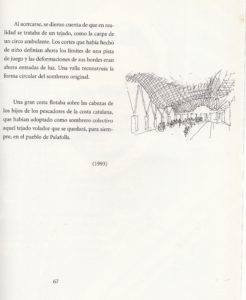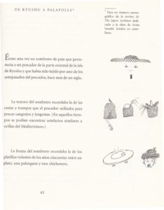 Aquest curiós capítol il·lustrat, de títol «De Kyushu a Palafolls», té reminiscències de rondalla tradicional eivissenca: Torres hi explica com un capell de palla (que recordava, en la forma, diverses arts de pesca mediterrànies) d’un pescador d’aquella illa japonesa, després de diverses vicissituds, arriba a Palafolls on, «màgicament», es converteix en «capell col·lectiu» per als fills dels pescadors de la costa catalana en forma d’obra arquitectònica d’Isozaki, autor del pavelló poliesportiu d’aquesta població del Maresme.