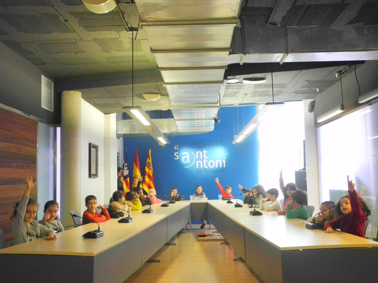 @Noudiari/ Els grups de primer i segon de Primària del CEIP Guillem de Montgrí han visitat avui la seu de l’Ajuntament de Sant Antoni de Portmany. Els petits han fet un recorregut per les instal·lacions acompanyats per alguns regidors i han participat després en un ple infantil.