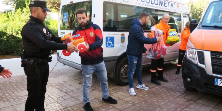 Representantes de la Policía Local, Protección Civil, la S.D. Portmany y el Club Bàsquet Sant Antoni han llevado hoy personalmente los juguetes a Cruz Roja de Ibiza y mañana, 6 de enero, se entregarán a las 12 horas en el Hospital Can Misses, coincidiendo con el día de los Reyes Magos.