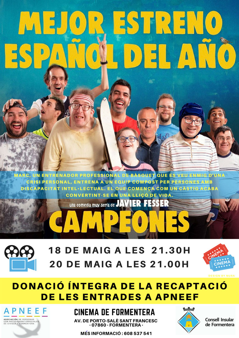 @Noudiari / La concejalía de Deportes del Ayuntamiento de Sant Antoni ha anunciado hoy que el sábado tendrá lugar la Trobada ‘Campeones’ en Sant Antoni. Se trata de un torneo de baloncesto 3×3 amistoso e integrador, en el que no habrá marcador puesto que los encuentros no tiene carácter competitivo y en el que estará presentes los actores de la película ‘Campeones‘, premiada este año con el Goya a la mejor película.