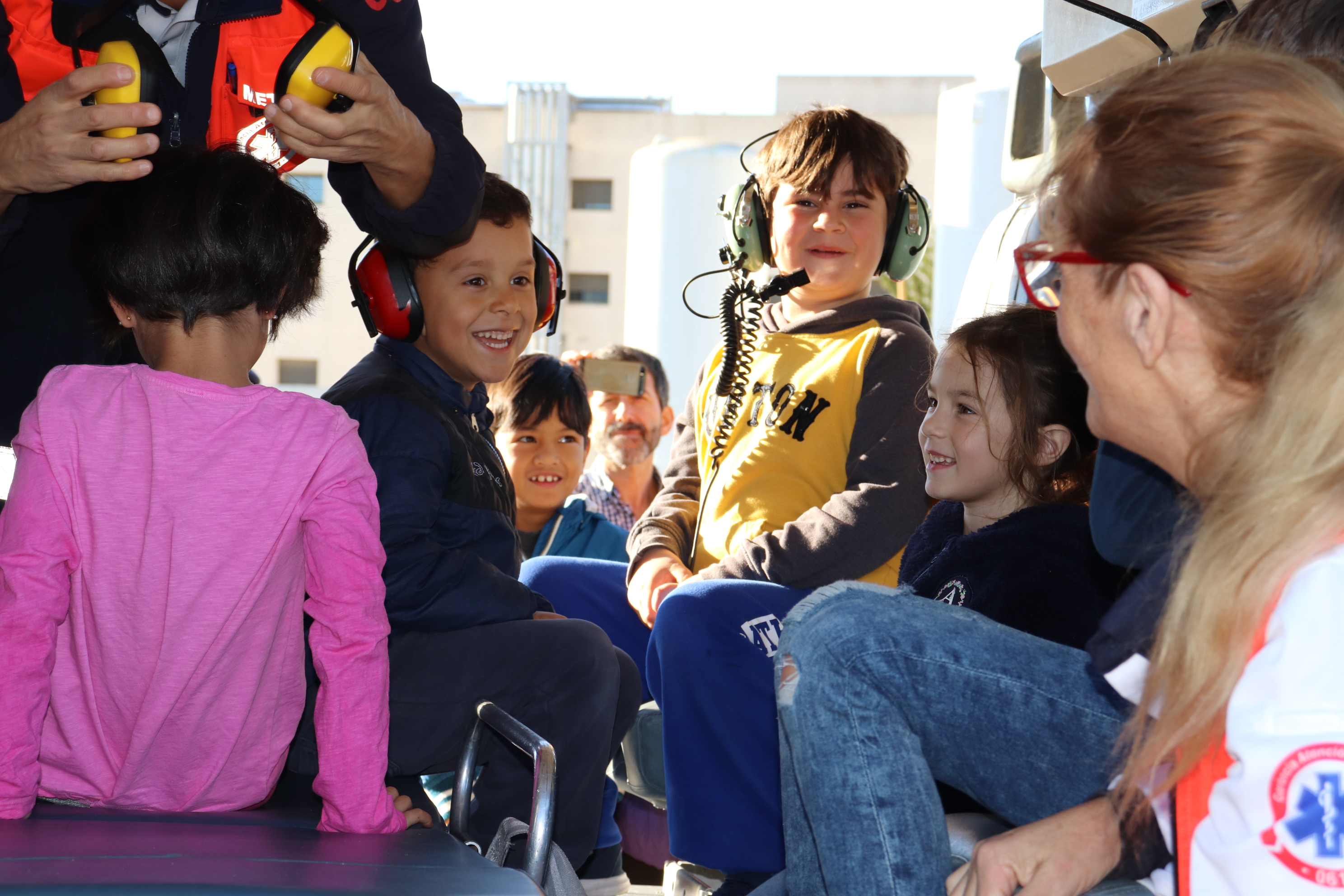 Los niños han mostrado mucho interés en todos los instrumentos que se encuentran en el interior de las ambulancias y del helicóptero y han podido subirse a la camilla, utilizar una mascarilla de oxígeno y un collarín en las ambulancias, e incluso se han podido probar los cascos que se utilizan al volar en helicóptero.