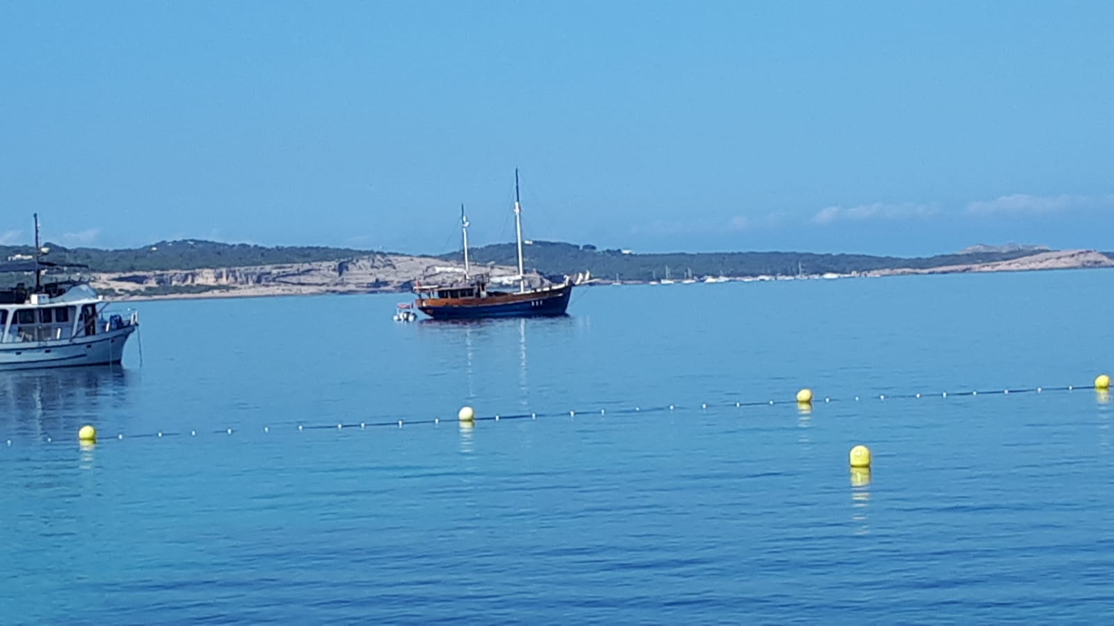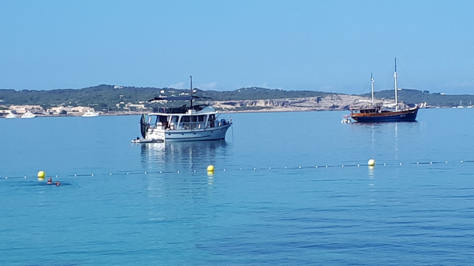 Barcos fondeados sobre posidonia en Sant Antoni.