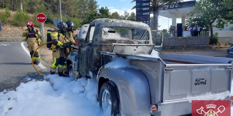 El suceso ha ocurrido en el cruce de las carreteras de Ibiza a Portinatx (EI-300) y de Sant Joan a Sant Miquel (EI-341), en el municipio de Sant Joan, junto a la gasolinera que hay allí ubicada. Los bomberos recibieron el aviso del incendio de un vehículo y hasta el lugar se desplazaron cinco efectivos en una bomba urbana pesada (BUP).