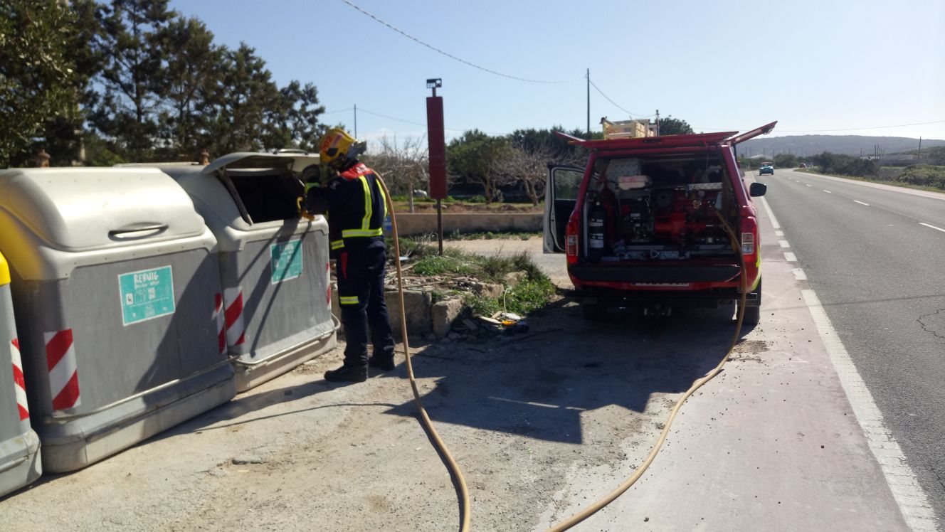 Los bomberos apagan un conato de incendio en un contenedor de basura en Formentera