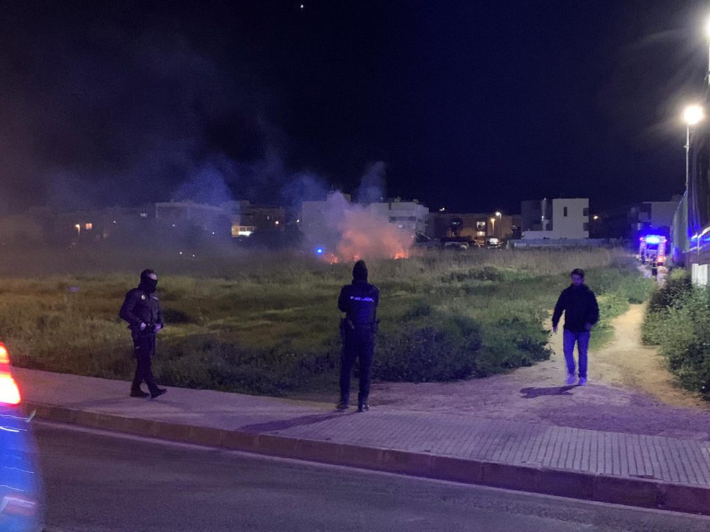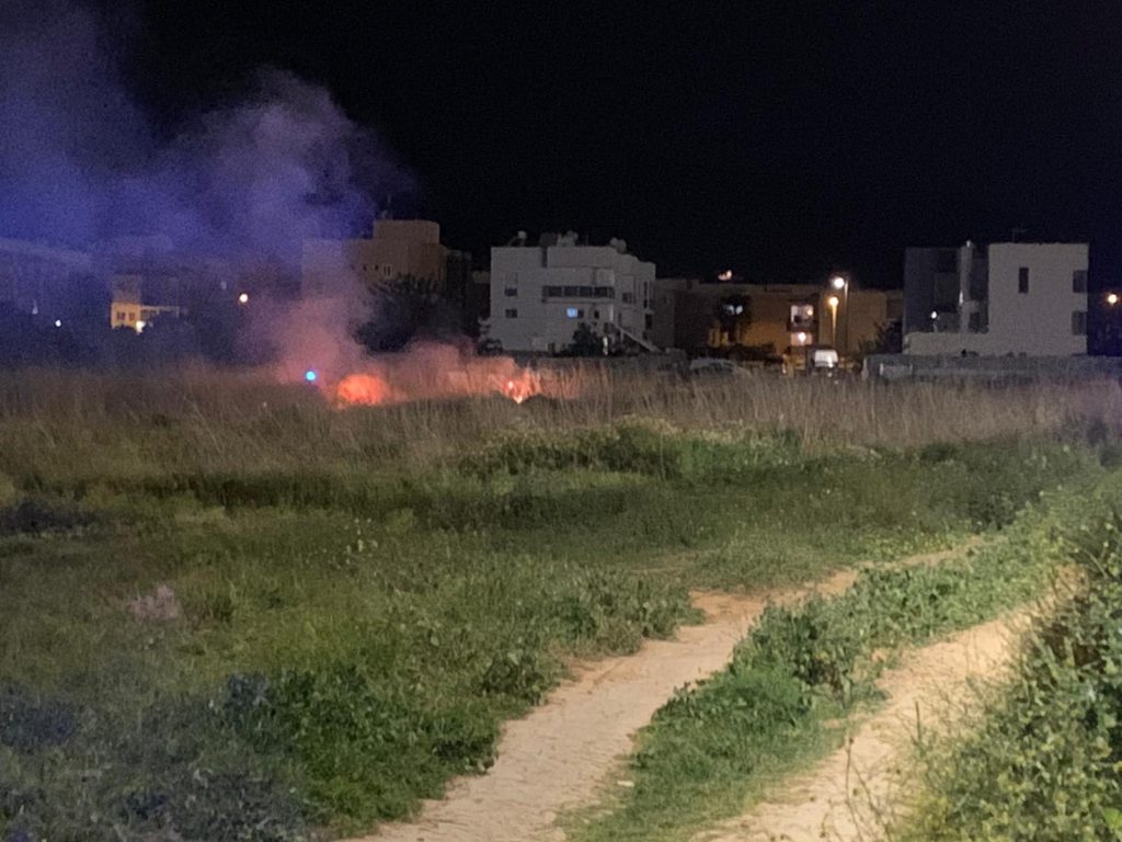 @Noudiari / Los bomberos han sofocado poco después de las nueve de la noche un incendio declarado en un descampado de Can Cantó, en la ciudad de Ibiza. Su intervención ha evitado que las llamas se propagaran por la zona a gran velocidad como consecuencia del fuerte viento reinante.