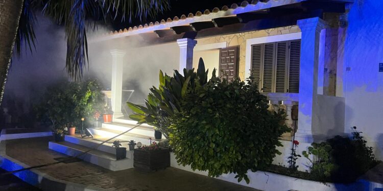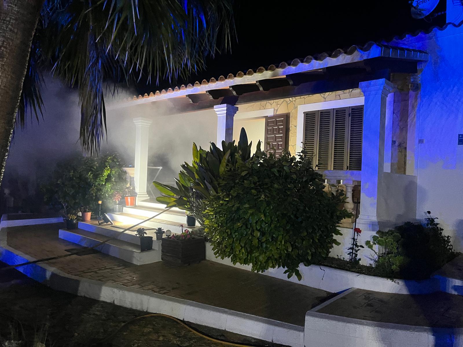 Posteriormente, a las 19:30 horas, los efectivos acudieron a un incendio en una vivienda unifamiliar en el camí de s’Alegria, que afectó a la estancia de la parte superior del inmueble, causando daños por calor y humo.