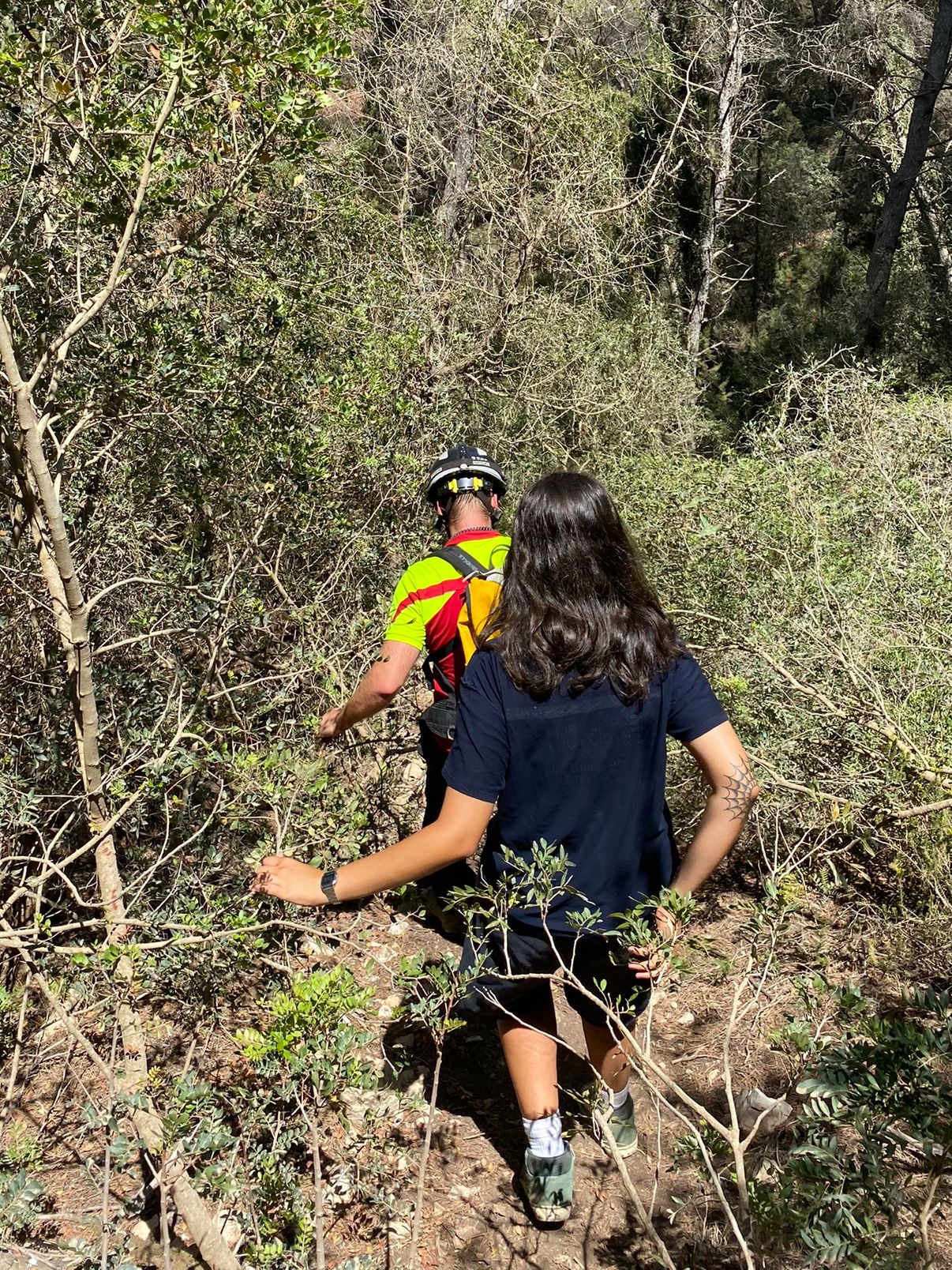 Dos bomberos del Grupo de Rescate Vertical (GRV) se han desplazado hasta el lugar en un vehículo ligero. Han llegado hasta su posición y la han acompañado hasta un lugar seguro, han agregado.