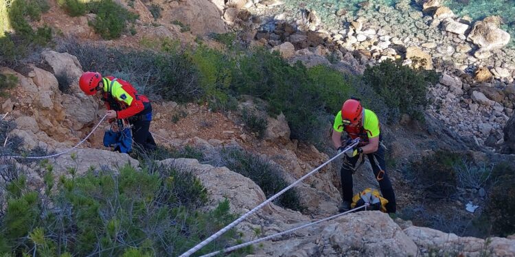 Los bomberos de Ibiza han rescatado este mediodía a un perro que, mientras paseaba con su dueño por la zona de Cala d’en Serra, en el municipio de Sant Joan, se ha caído accidentalmente por un barranco. A pesar del susto, el animal ha sido recuperado sano y salvo por el grupo de rescate vertical de los bomberos de Ibiza, que se han deslizado por la pendiente con cuerdas y arneses hasta llegar al lugar al que había ido a parar el animal, que solo ha sufrido pequeñas rozaduras de poca consideración.