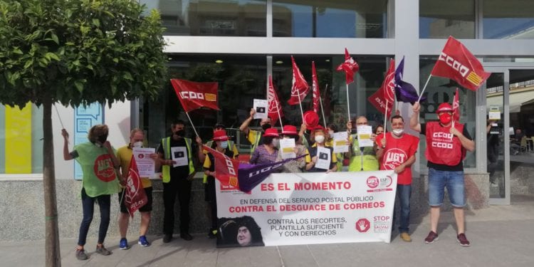 Los carteros de la zona de Santa Eularia se han sumado hoy a la movilización promovida por los delegados y delegadas de CCOO y UGT Correos de Illes Balears para exigir a la dirección, «con su presidente Juan Manuel Serrano a la cabeza», que «cesen las políticas de desguace del operador público».