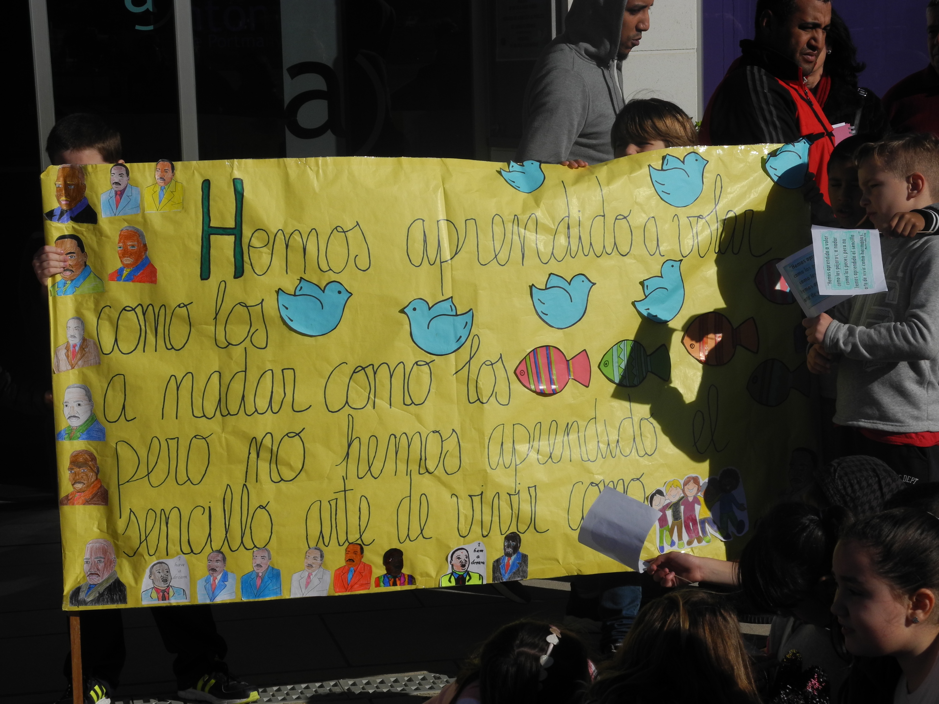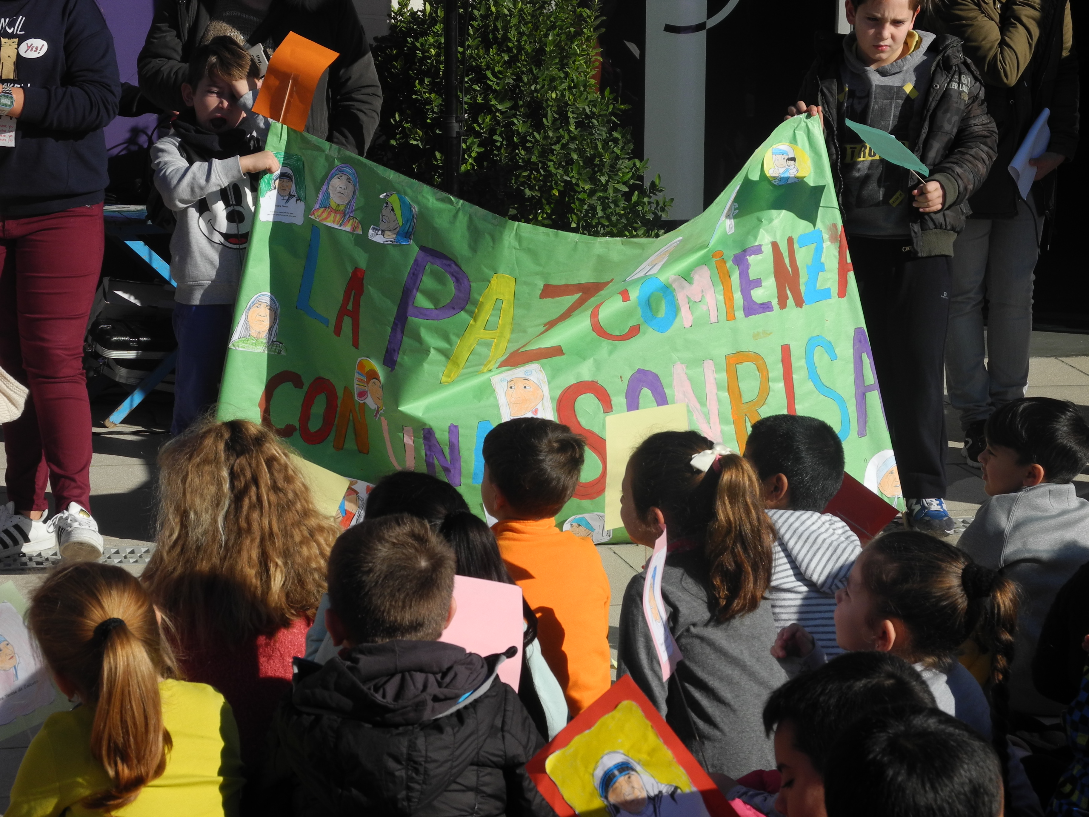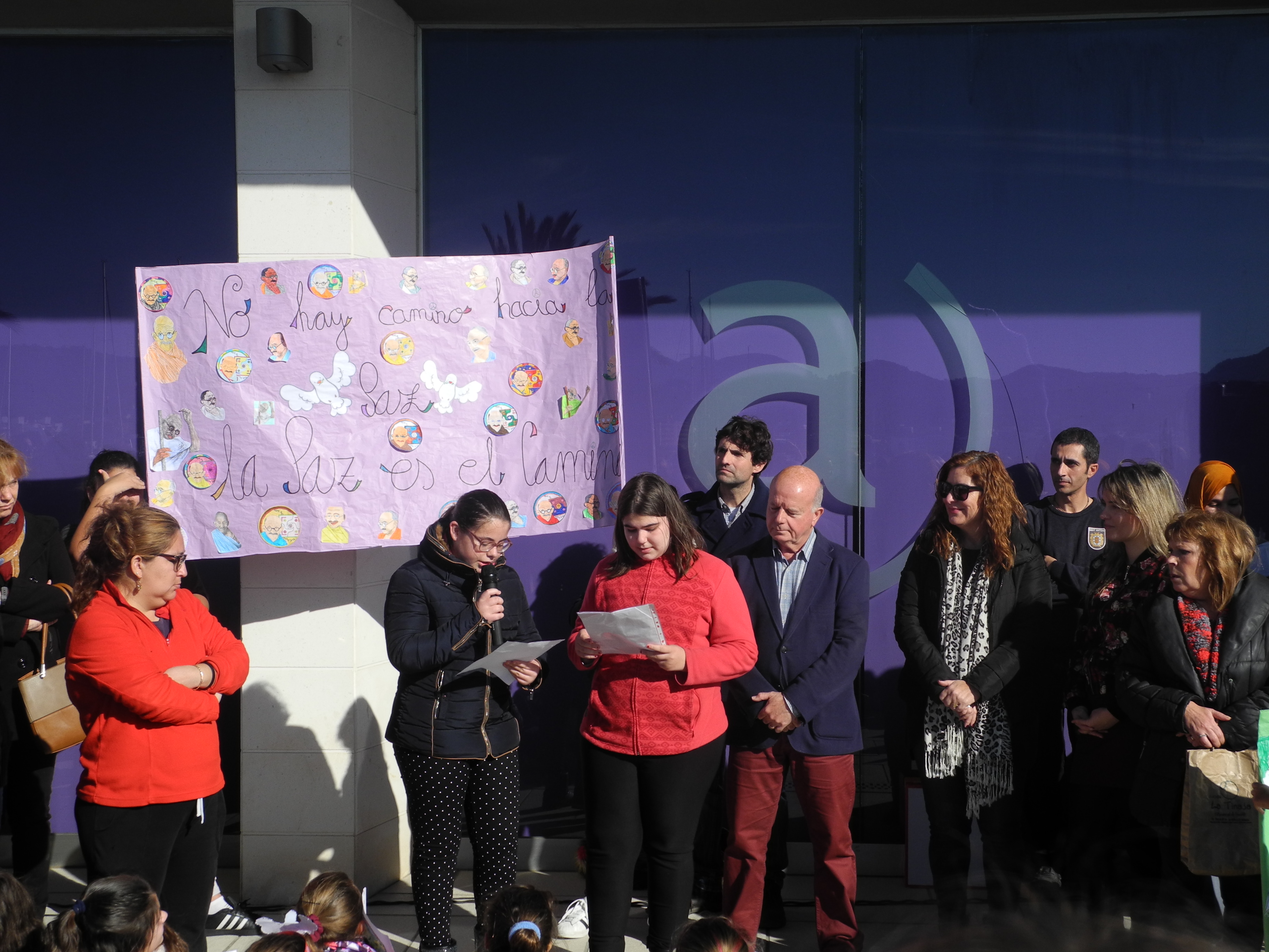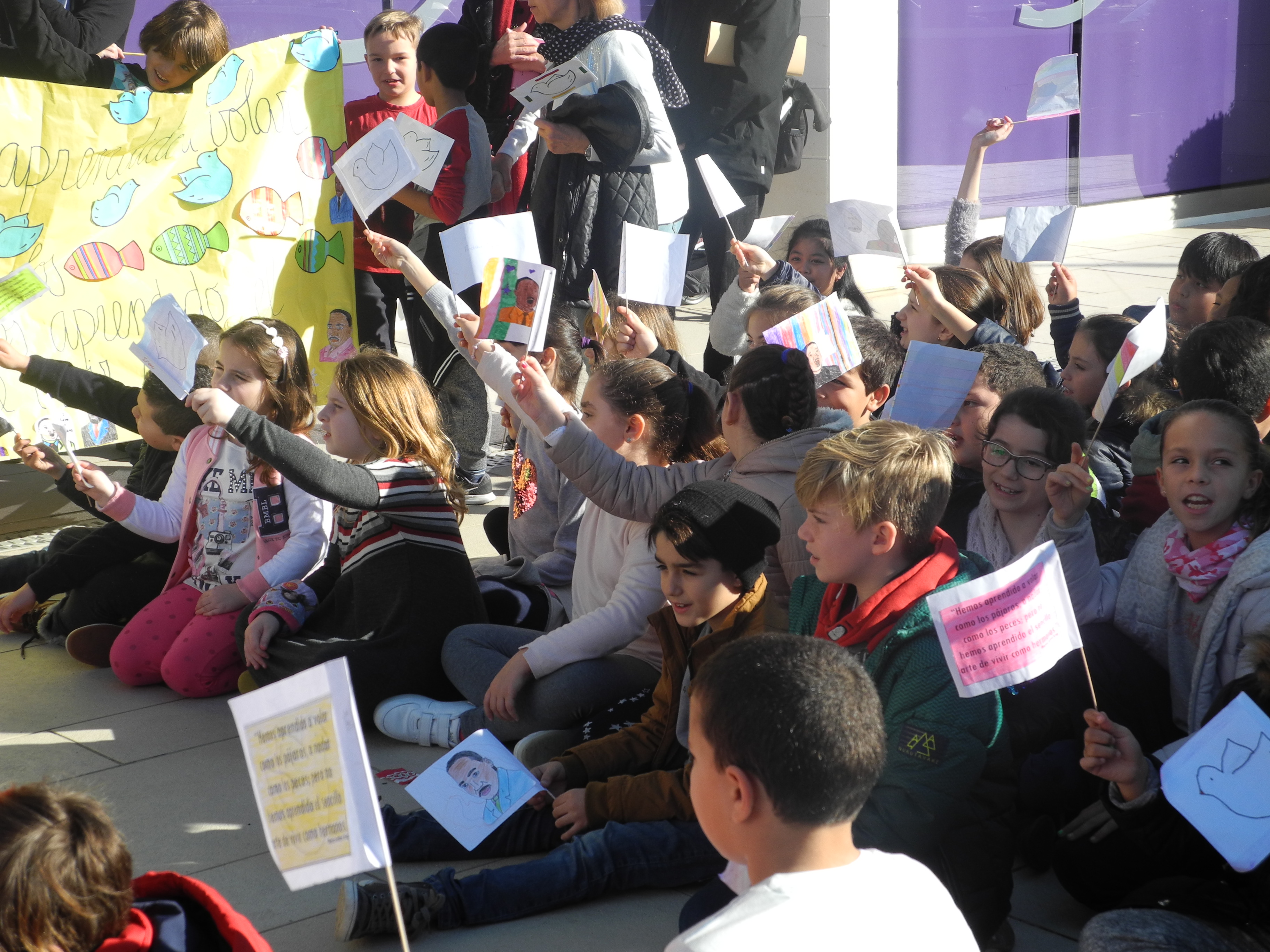 Los escolares han entonado la canción ‘No dudaría’ y a continuación, algunas alumnas de Primaria han leído un manifiesto. Con motivo del Día de la Paz los estudiantes han realizado diferentes dibujos que están expuestos en el centro educativo y que sus familias han podido contemplar hoy.
