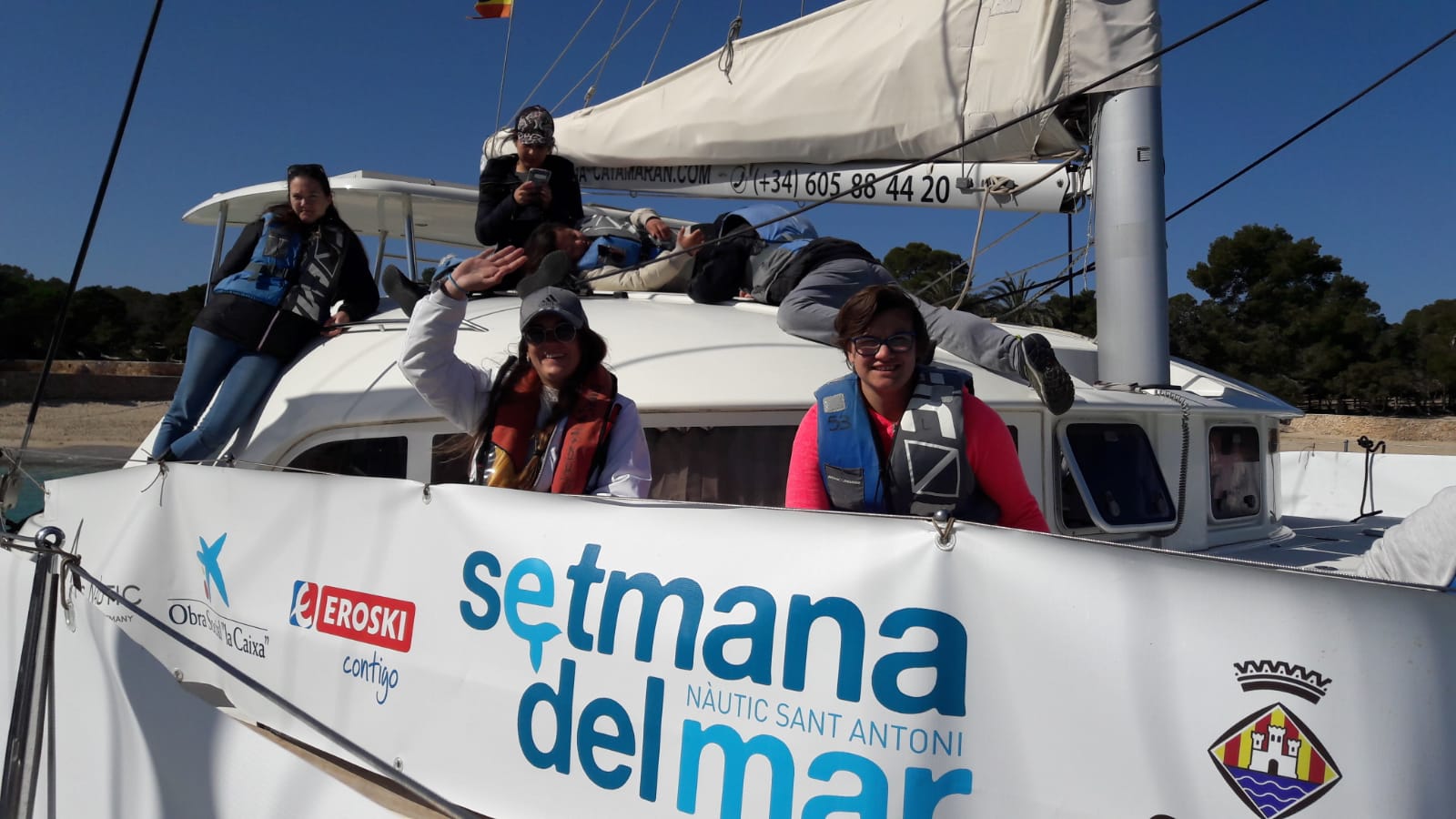Una vez familiarizados con el entorno marino, se ha producido la salida al mar en tres barcos que han navegado hasta la playa de Cala Bassa. Todos los chicos y chicas han podido llevar el timón de la embarcación y realizar diversas tareas como marineros con el apoyo y supervisión de la tripulación. También han dado de comer a los peces y a las gaviotas que se acercaban a sus veleros.