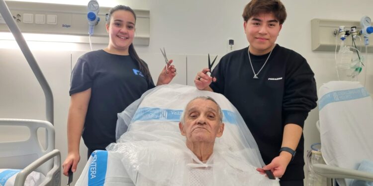 Se trata de la tercera edición de una iniciativa que cuenta con la colaboración del IES Algarb. Los alumnos del ciclo de grado medio de Peluquería del centro de Sant Jordi de ses Salines han acudido a cortar el pelo y peinar a las personas que llevan más tiempo hospitalizadas en las plantas de Medicina Interna F y G y en la Unidad de hospitalización de Traumatología y con ello regalar un momento de alegría y distensión en el que olvidar por un momento y al son de ruido de tijeras y secadores, el ingreso hospitalario.