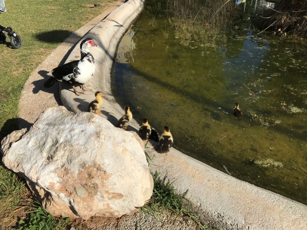 Desde hace unos días, las crías de pato que han nacido en el estanque del Parque de la Paz de Ibiza se han convertido en toda una atracción, no solo para las familias que frecuentan esta zonas sino para los mayores que descansan en el parque, para los transeúntes y para los usuarios y usuarias de la Llar Eivissa.