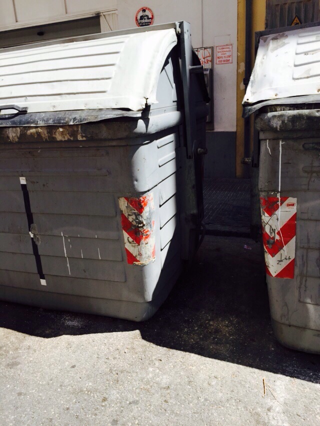 Los contendores de la calle Abad y Lasierra, tras el paso de los servicios de limpieza.