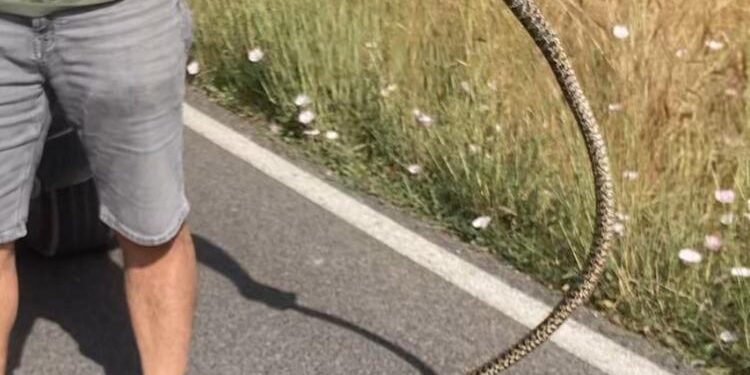 Ha sido atropellada por un coche en la carretera de es Cubells, a la altura de Can Mestre, y los ocupantes del mismo se han sorprendido de la longitud de la culebra de herradura, una especie invasora en Ibiza que amenaza la supervivencia de la lagartija. En total, 1,5 metros, y con un diámetro importante. Explican que cuando le han pasado por encima ha dado la impresión de que pasaban por un bache. Sigue creciendo el tamaño de los ejemplares de esta especie en Ibiza, donde no tienen depredador.