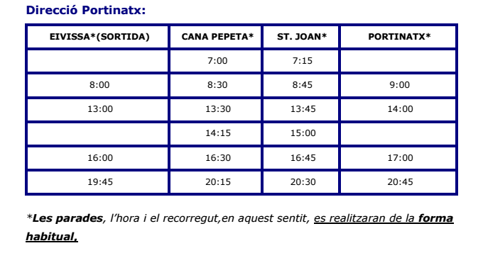 @Noudiari / La línia de transport públic Eivissa – Sant Joan – Portinatx pateix modificacions a partir de dilluns 25 de gener, a causa de les obre de reforma de la carretera C-733. En sentit Sant Joan, atès que es manté un carril obert, els horaris i parades es mantenen de manera habitual.