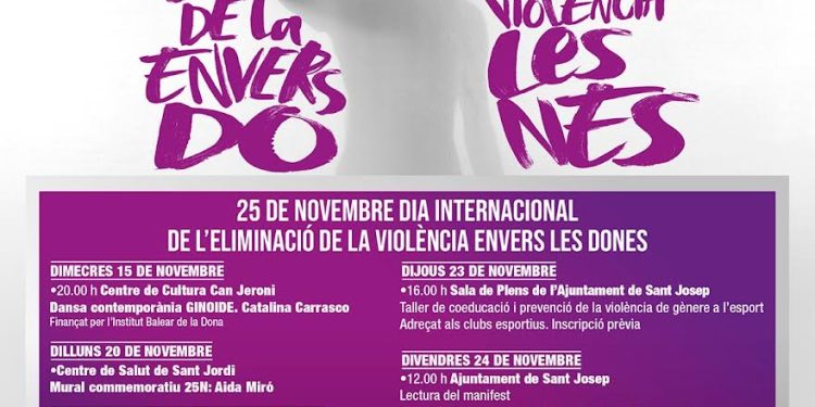 Amb el propòsit de commemorar el Dia Internacional de l’Eliminació de la Violència contra la Dona, l’Ajuntament de Sant Josep està duent a terme una extensa  agenda d’activitats que va tenir inici el passat dimecres 15 de novembre i que es prolongarà fins al divendres 24 de novembre.