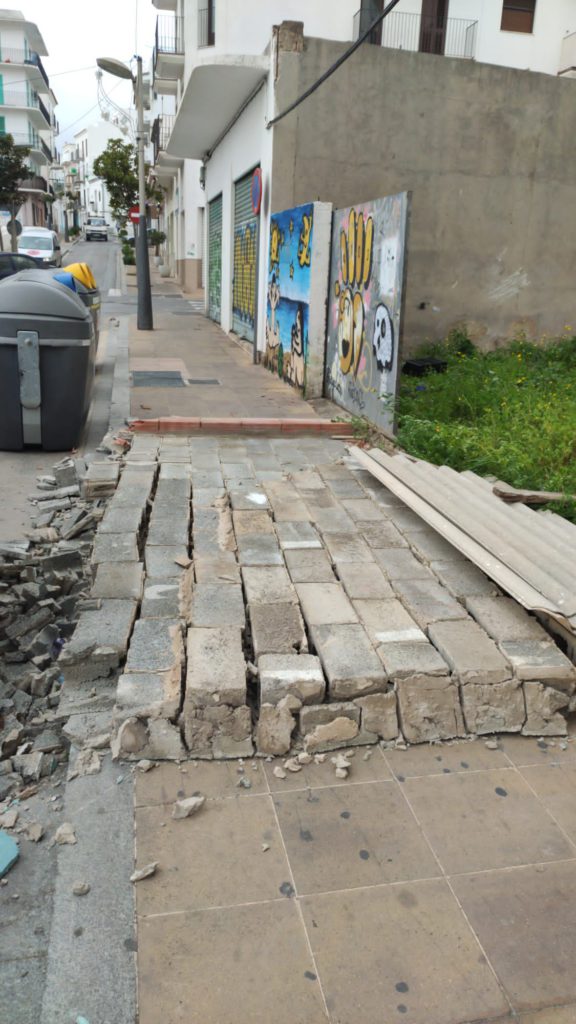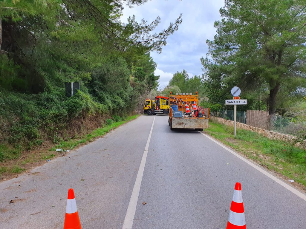 En Sant Antoni se han registrado el derrumbamiento de una pared sobre la acera en la calle Ramón y Cajal; la caída de un árbol en la avenida Isidor Macabich de Sant Rafel; el desplazamiento de varios contenedores; varios barcos varados en la bahía de Sant Antoni y una embarcación pequeña levantada por el viento hasta caer sobre el Passeig de s’Arenal.