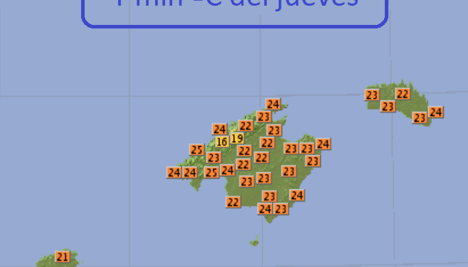 Este jueves bajarán las temperaturas, sobre todo al sur de Mallorca. Si las máximas del miércoles en esa zona se situaron entre 34 y 36 ºC, este jueves está previsto que lleguen a entre 27 y 30 ºC, que son entre 6 y 7 grados menos.