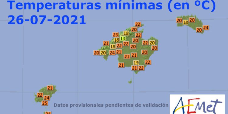 Ibiza ha registrado una madrugada tórrida, con mínimas que no han bajado de los 25 grados en varios puntos. La zona con la noche más cálida ha sido la de Sant Josep, con 25 grados de mínima en el aeropuerto de Ibiza, mientras que Formentera y la ciudad de Ibiza han estado a mínimas de 24 grados. En Sant Antoni, con 22 grados, y en Sant Joan, con 21, la noche ha sido algo más llevadera.